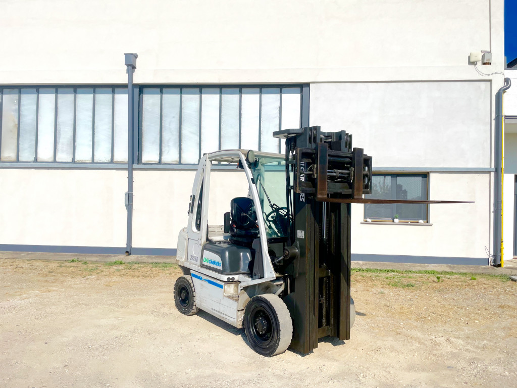 Carrelli diesel usati di marca Unicarriers modello Y1D2A25Q con propulsione Diesel, portata 25 q.li, altezza di sollevamento 4900 mm, in vendita. Occasione a € 12.300.