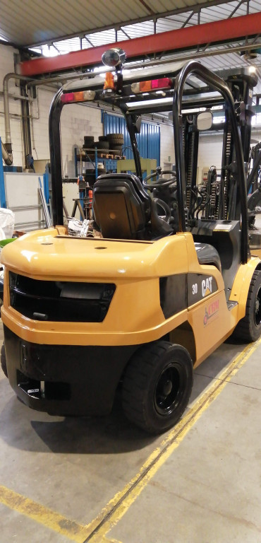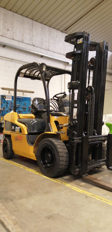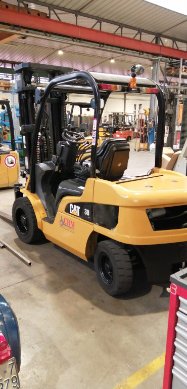 Carrelli diesel usati di marca Caterpillar modello DP30N con propulsione Diesel, portata 30 q.li, altezza di sollevamento 5 mm, in vendita. Occasione.