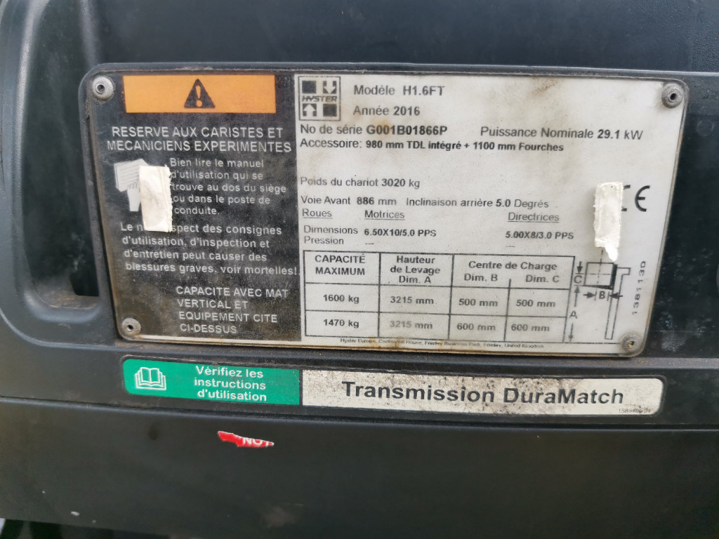 Carrelli diesel usati di marca Hyster modello H1.6FT con propulsione Diesel, portata 16 q.li, altezza di sollevamento 3215 mm, in vendita. Occasione a € 12.000.