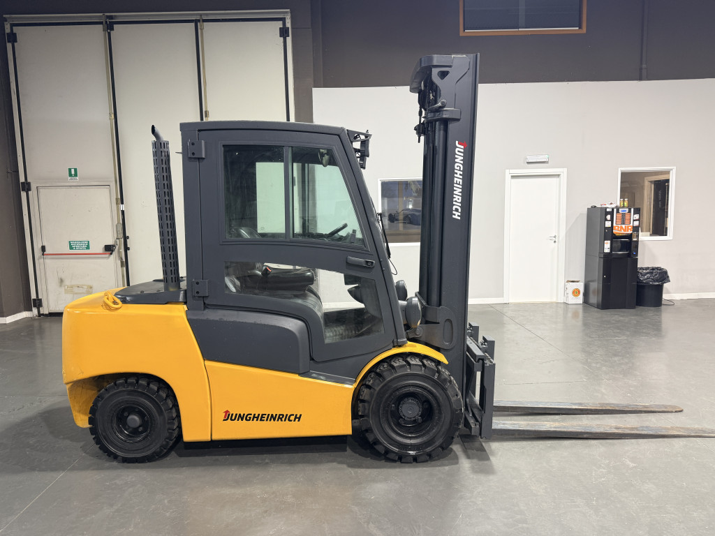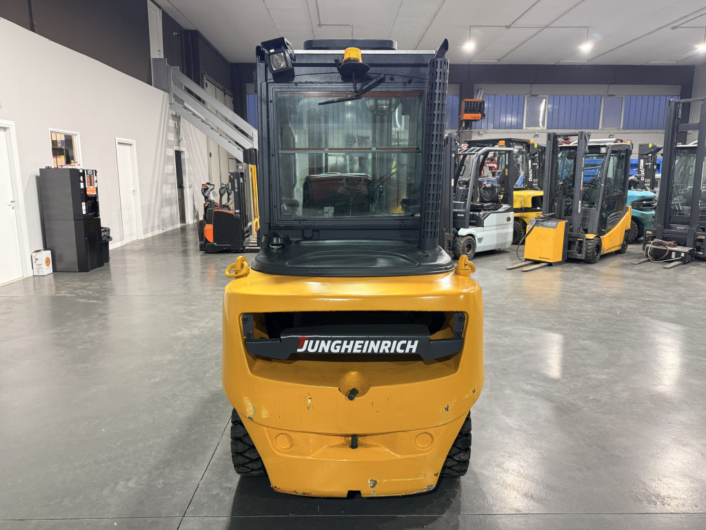 Carrelli diesel usati di marca Jungheinrich modello DFG 435 370ZT con propulsione Diesel, portata 35 q.li, altezza di sollevamento 3700 mm, in vendita. Occasione a € 17.900.
