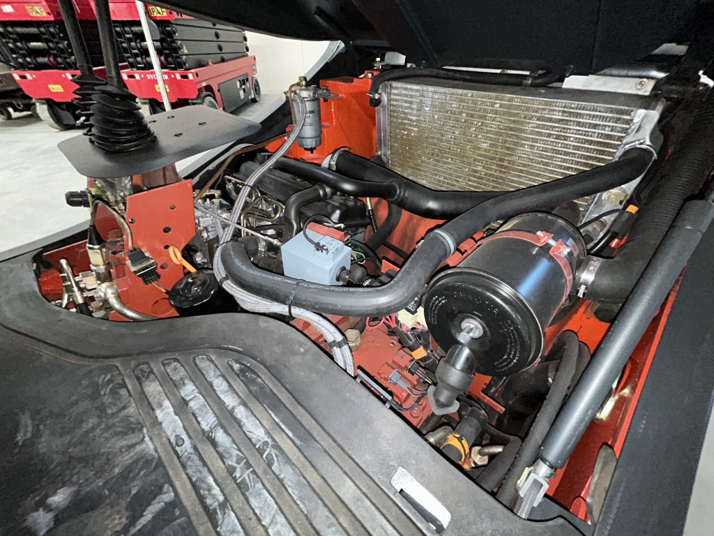 RICONDIZIONATO, montante duplex, forche 1.200 mm, traslatore integrato, 3 vie idrauliche con impianto, vetro anteriore, vetro posteriore, vetro superiore, luci di lavoro, motore Volkswagen - 4 cilindri, trasmissione idrostatica, 963 ore lavoro, doppio pedale, 4 gomme...