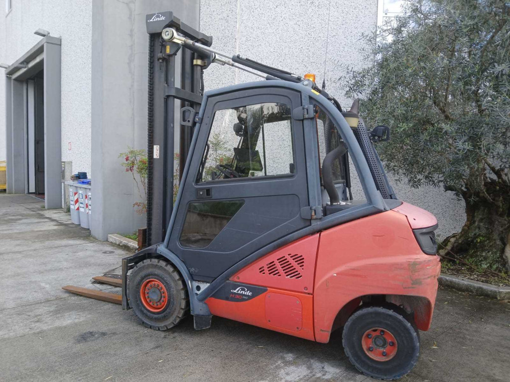 Carrelli diesel usati di marca Linde modello H 30 D con propulsione Diesel, portata 30 q.li, altezza di sollevamento 4510 mm, in vendita. Occasione.