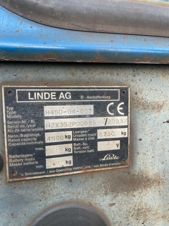 Carrelli diesel usati di marca Linde modello H 45 D con propulsione Diesel, portata 45 q.li, altezza di sollevamento 0 mm, in vendita. Occasione a € 9.500.
