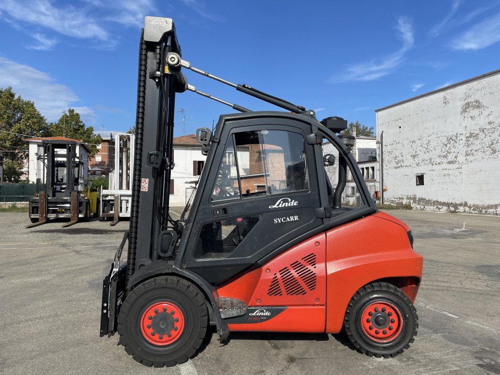 Carrelli diesel usati di marca Linde modello H 50 D/600 EVO con propulsione Diesel, portata 50 q.li, altezza di sollevamento 4400 mm, in vendita. Occasione a € 27.850.