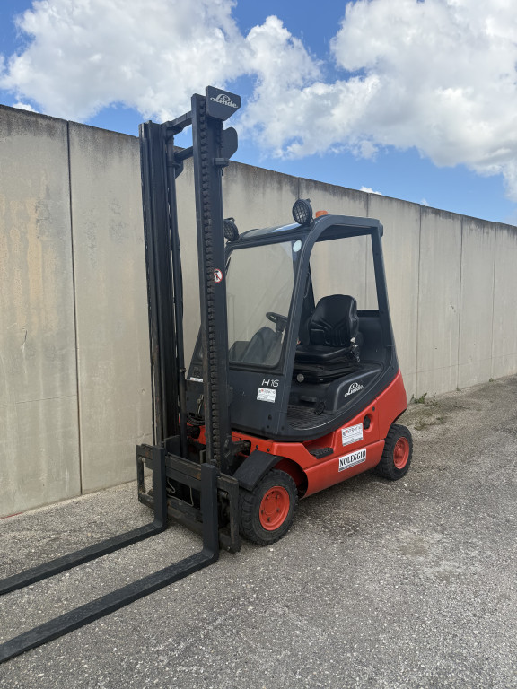 Carrelli diesel usati di marca Linde modello H16D-03 con propulsione Diesel, portata 16 q.li, altezza di sollevamento 4200 mm, in vendita. Occasione a € 13.400.