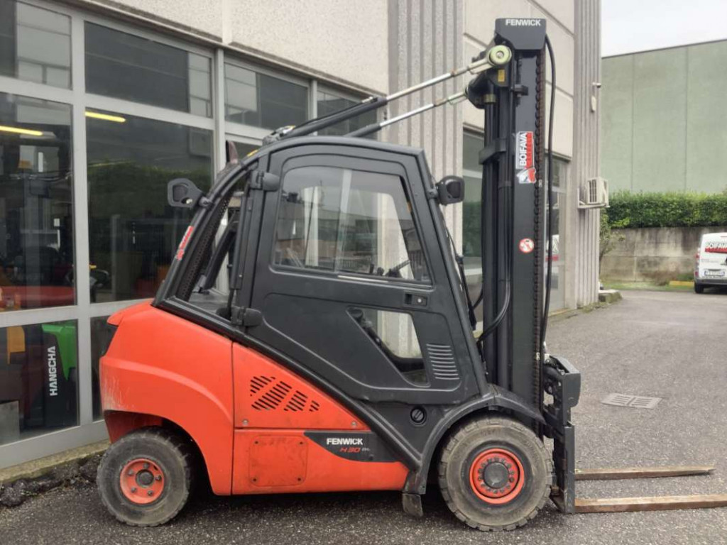 Carrelli diesel usati di marca Linde modello H30D-02 con propulsione Diesel, portata 30 q.li, altezza di sollevamento 4450 mm, in vendita. Occasione a € 14.900.