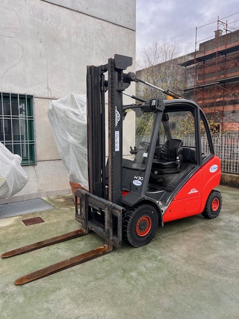 Carrelli diesel usati di marca Linde modello H30D con propulsione Diesel, portata 30 q.li, altezza di sollevamento 4000 mm, in vendita. Occasione a € 14.800.