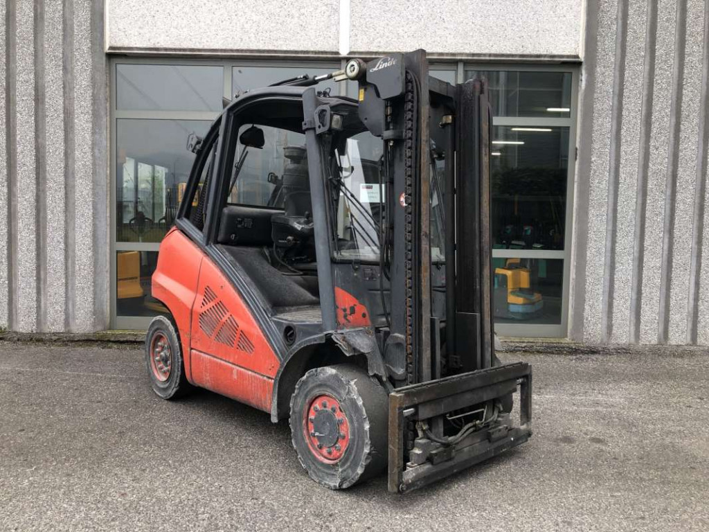 Carrelli diesel usati di marca Linde modello H40D-02 con propulsione Diesel, portata 40 q.li, altezza di sollevamento 3200 mm, in vendita. Occasione a € 19.500.