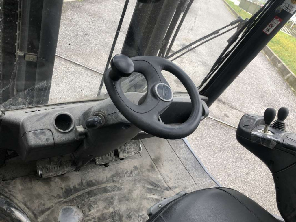 Carrello elevatore diesel funzionante completo di forche, semicabina, fari lavoro e traslatore. Running diesl forklift with forks, half cabin, spotlights and slideshift.