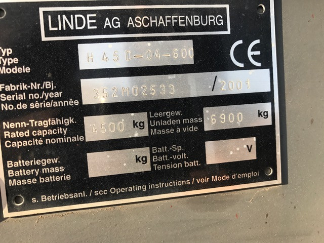 Carrelli diesel usati di marca Linde modello H45 con propulsione Diesel, portata 45 q.li, altezza di sollevamento 4000 mm, in vendita. Occasione a € 17.500.