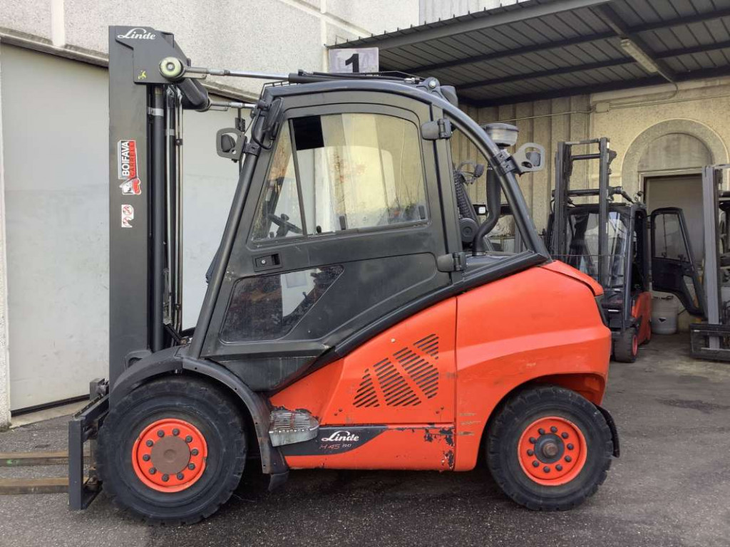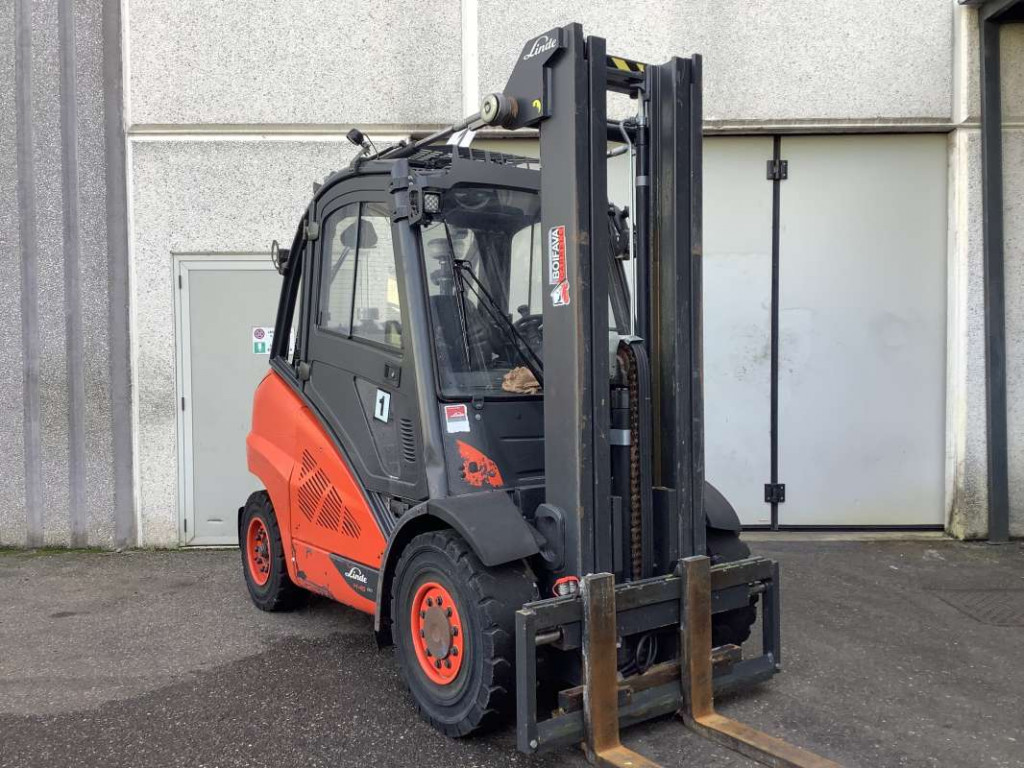 Carrelli diesel usati di marca Linde modello H45D-02 con propulsione Diesel, portata 45 q.li, altezza di sollevamento 4965 mm, in vendita. Occasione a € 24.800.