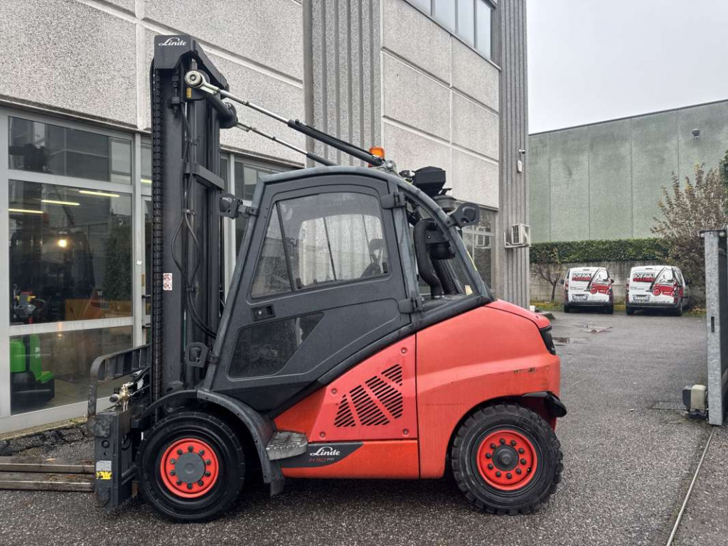 Carrelli diesel usati di marca Linde modello H50D-02 con propulsione Diesel, portata 50 q.li, altezza di sollevamento 5000 mm, in vendita. Occasione a € 25.200.