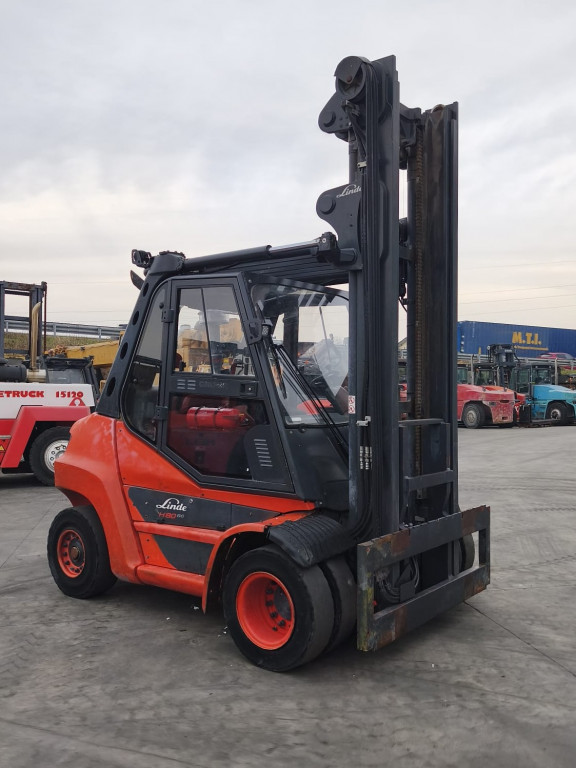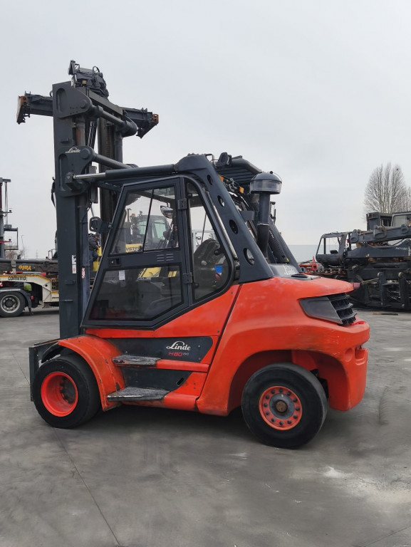Carrelli diesel usati di marca Linde modello H80D-03 con propulsione Diesel, portata 80 q.li, altezza di sollevamento 5250 mm, in vendita. Occasione.