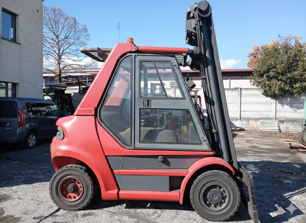 Carrelli diesel usati di marca Linde modello H80D con propulsione Diesel, portata 80 q.li, altezza di sollevamento 4400 mm, in vendita. Occasione a € 27.500.