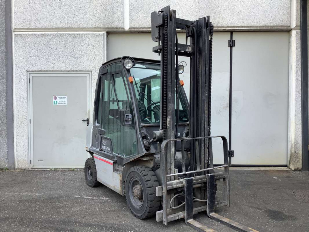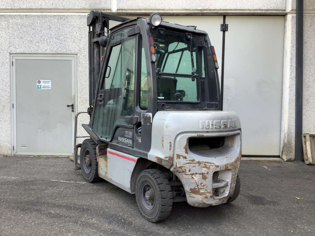 Carrelli diesel usati di marca Nissan modello FD02A25Q con propulsione Diesel, portata 25 q.li, altezza di sollevamento 4000 mm, in vendita. Occasione a € 12.500.