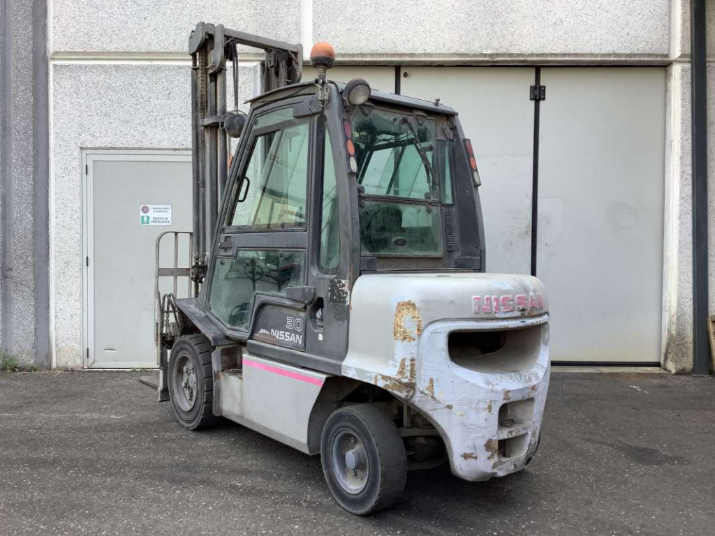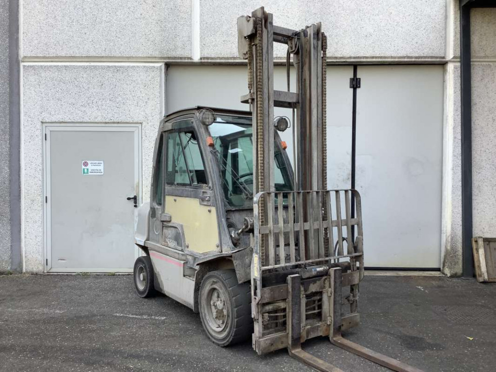 Carrelli diesel usati di marca Nissan modello YG1D230Q con propulsione Diesel, portata 30 q.li, altezza di sollevamento 4500 mm, in vendita. Occasione a € 12.600.