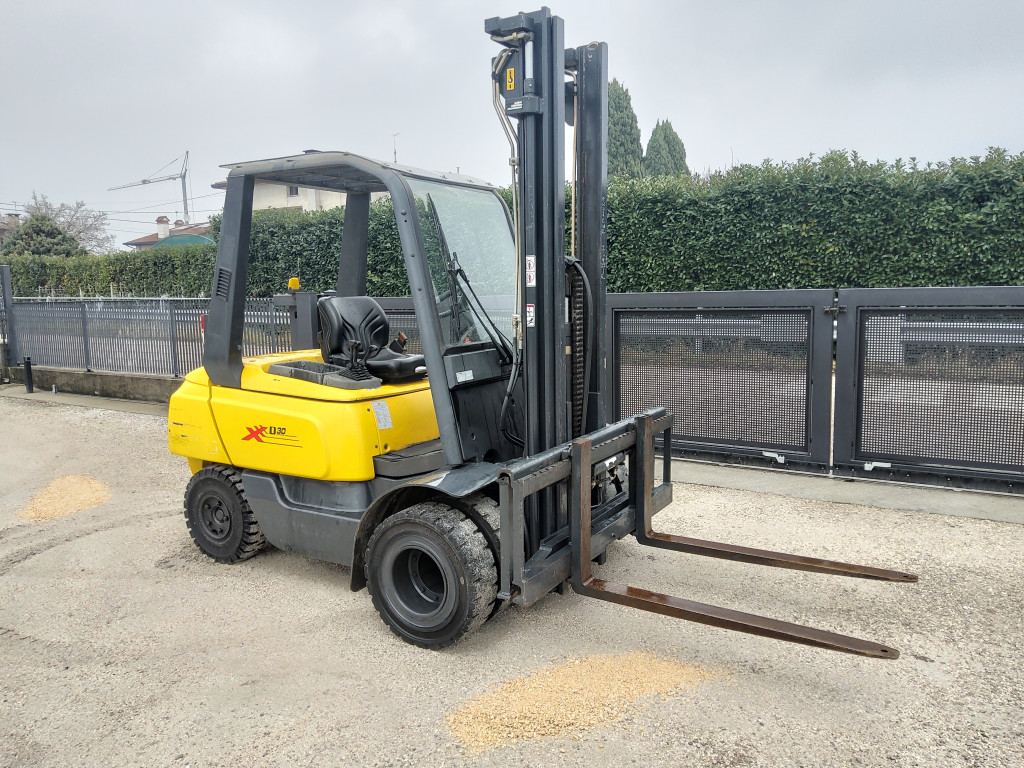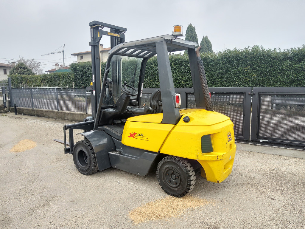 Carrelli diesel usati di marca OM / Pimespo modello XD30 con propulsione Diesel, portata 30 q.li, altezza di sollevamento 4050 mm, in vendita. Occasione a € 10.000.