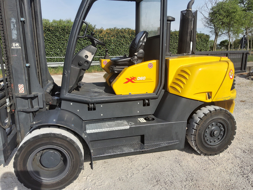 Carrelli diesel usati di marca OM / Pimespo modello XD60 con propulsione Diesel, portata 60 q.li, altezza di sollevamento 3900 mm, in vendita. Occasione a € 18.000.