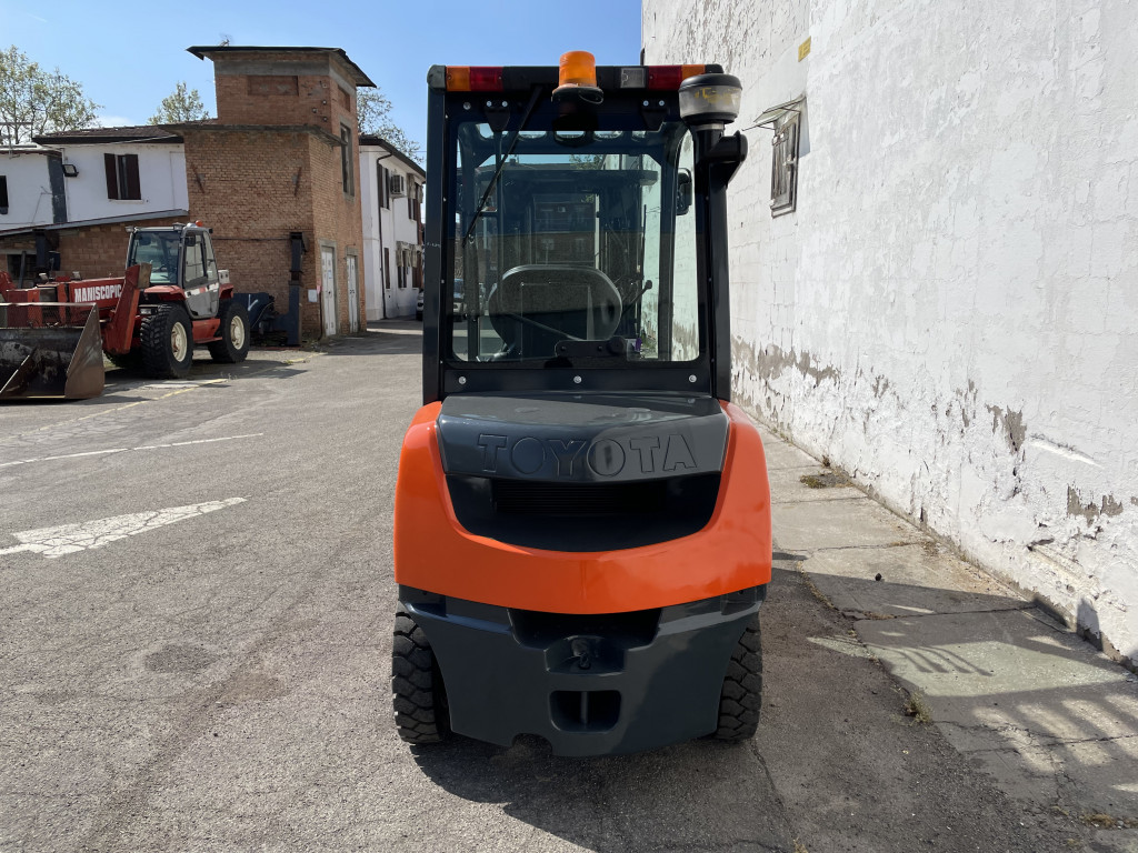 Carrelli diesel usati di marca Toyota modello 02-8 FDF 25 (1600 ore) con propulsione Diesel, portata 25 q.li, altezza di sollevamento 4300 mm, in vendita. Occasione a € 23.900.