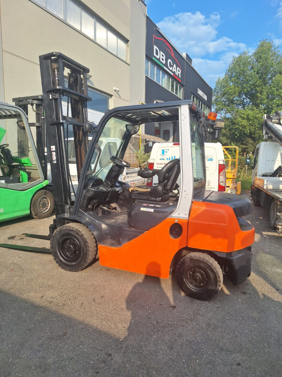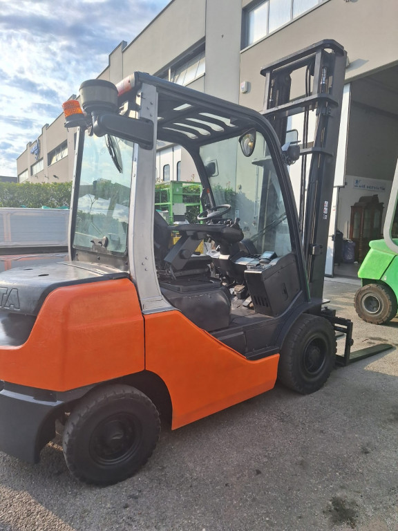 Carrelli diesel usati di marca Toyota modello 02-8FDF25 con propulsione Diesel, portata 25 q.li, altezza di sollevamento 4500 mm, in vendita. Occasione a € 9.800.