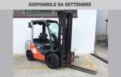 Carrelli diesel usati di marca Toyota modello 02-8FDJF35 con propulsione DIESEL, portata 35 q.li, altezza di sollevamento 4700 mm, in vendita. Occasione a € 25.000.
