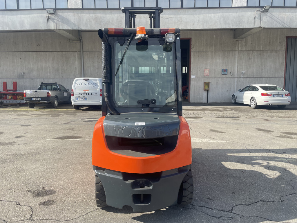 Carrelli diesel usati di marca Toyota modello 06-8 FD 25 F con propulsione Diesel, portata 25 q.li, altezza di sollevamento 4500 mm, in vendita. Occasione a € 16.900.