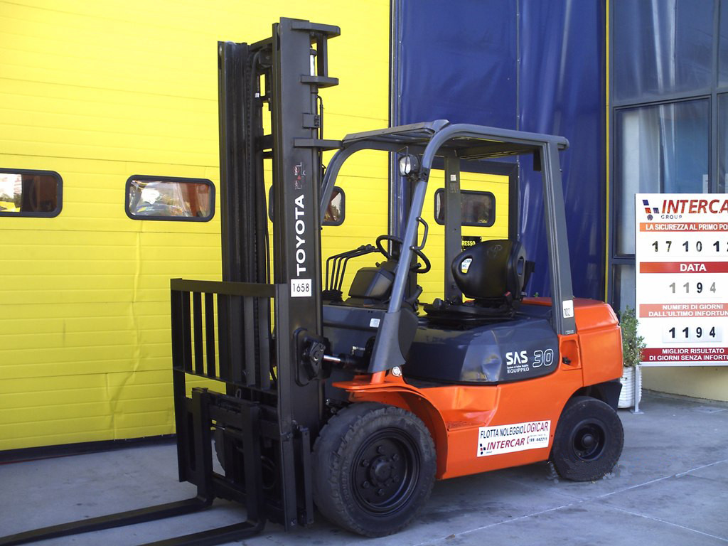 Carrelli diesel usati di marca Toyota modello 62-7FDF30 con propulsione Diesel, portata 30 q.li, altezza di sollevamento 4000 mm, in vendita. Occasione a € 15.500.