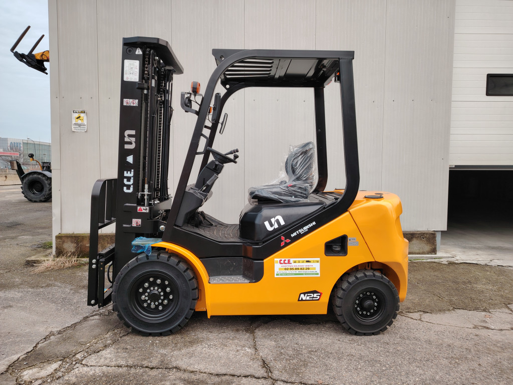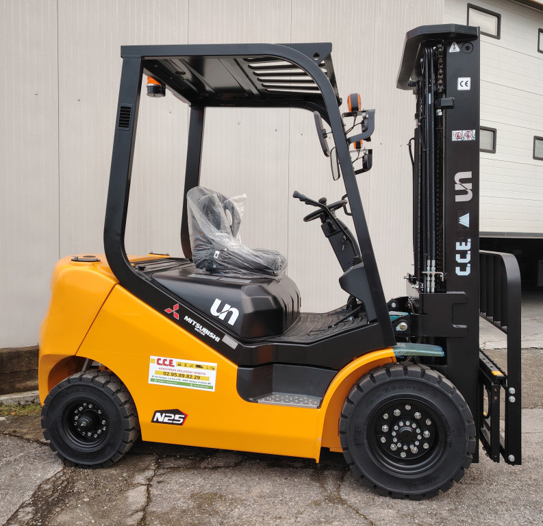 Carrelli diesel usati di marca UN Forklift modello FD25T con propulsione Diesel,  portata 25 q.li,  altezza di sollevamento 3300 mm,  in vendita. Occasione a € 19.900.