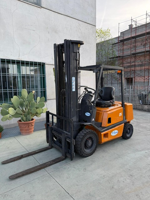 Carrelli diesel usati di marca Yale modello GDP 25 con propulsione Diesel, portata 25 q.li, altezza di sollevamento 5750 mm, in vendita. Occasione a € 10.000.