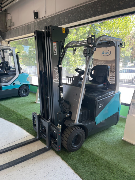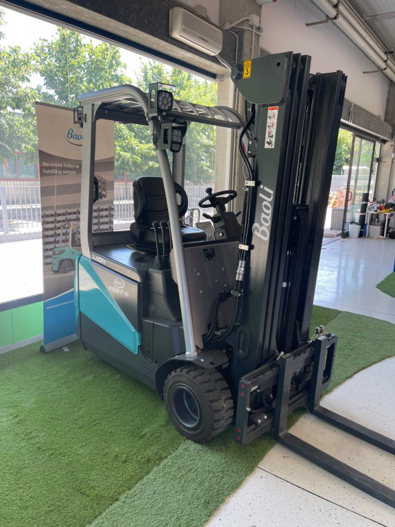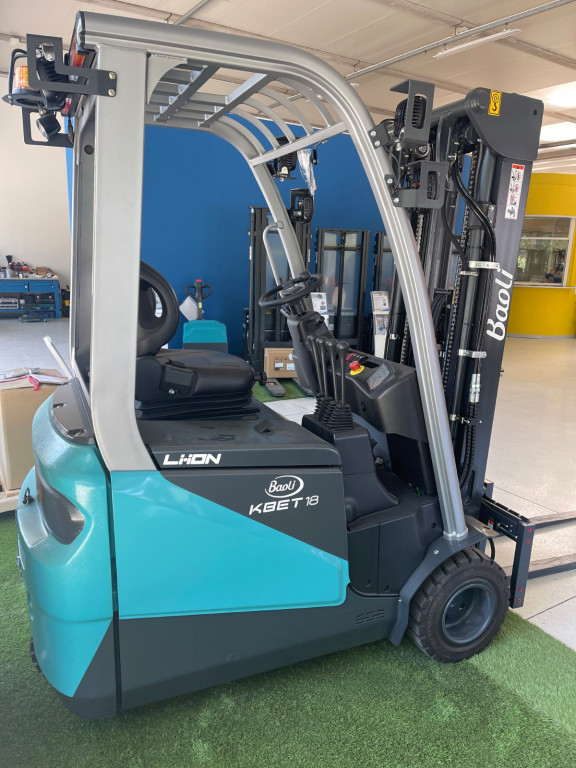 carrello elevatore Baoli mod. KBET 18 litio, nuovo di fabbrica, sollevamento 4700 mm triplex gal, traslatore integrato, forche 1200 mm, forche 1200 mm, batterie trazione al litio 80 V, caricabatterie trifase, lampeggiante, cicalino, cinture di sicurezza, certificato CE, impianto luci completo, 4° via idraulica, 4° leva, gommatura super elastica semplice, lampeggiante, cicalino, cinture di sicurezza, certificato CE, garanzia 12 mesi, pronta consegna