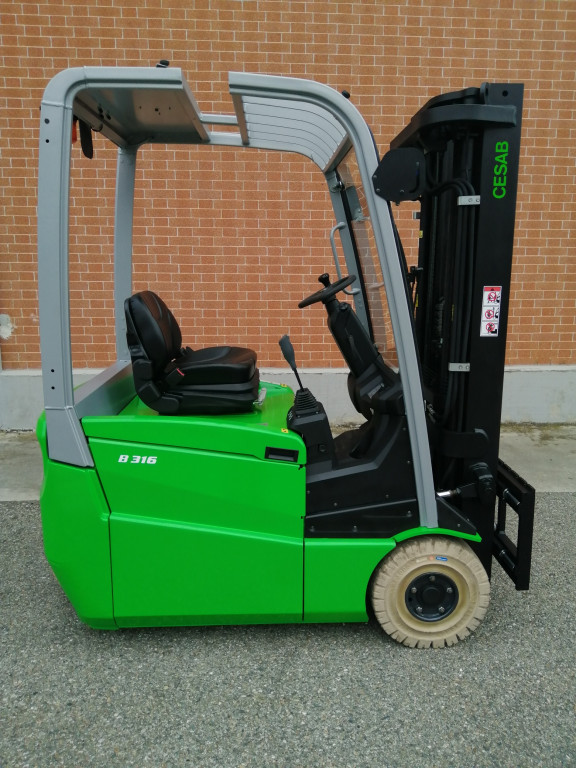 Carrelli elettrici usati di marca Cesab modello B 316 con propulsione Elettrica, portata 16 q.li, altezza di sollevamento 4500 mm, in vendita. Occasione.
