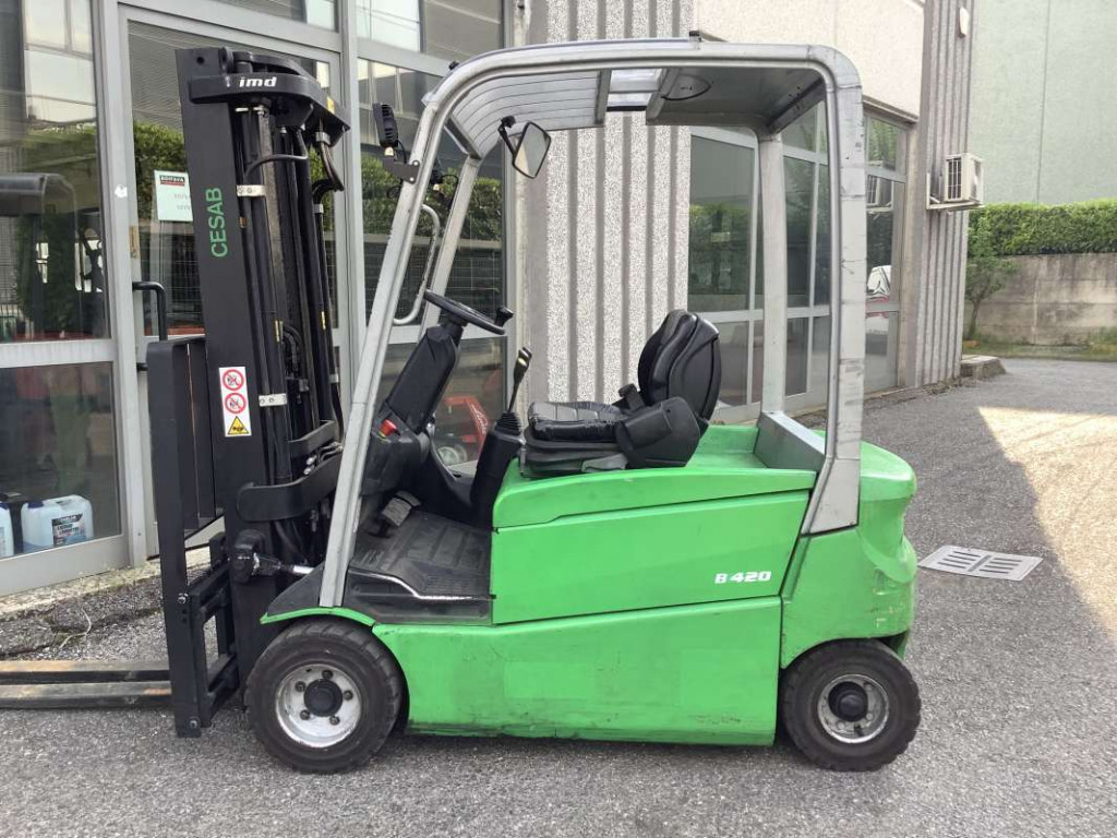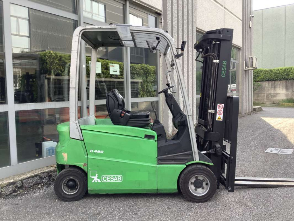 Carrelli elettrici usati di marca Cesab modello B420 con propulsione Elettrica, portata 20 q.li, altezza di sollevamento 4500 mm, in vendita. Occasione a € 8.900.