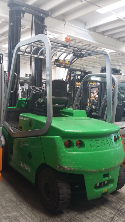 Carrello elevatore usato CESAB Mod. MAK 450 - Anno 2009 - 6500 ore di lavoro - Portata kg. 4500 - Elettrico - Sollevamento 4 metri 2 sfili a grande visibilità - 4° via idraulica, 4° leva - gomme nuove, batteria trazione 80 V 725 ah, (buona autonomia certificata 71 %) rabbocco centralizzato, caricabatterie trifase, lampeggiante, cicalino cinture di sicurezza, certificato "CE" Revisionato, riverniciato - garanzia