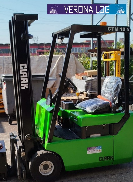Carrelli elettrici usati di marca Clark modello CTM 12S con propulsione Elettrica, portata 12 q.li, altezza di sollevamento 3300 mm, in vendita. Occasione a € 7.900.