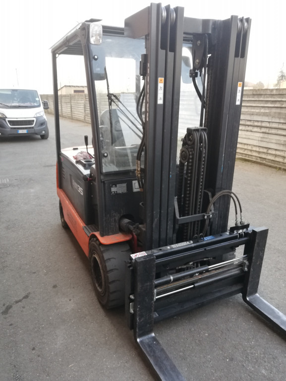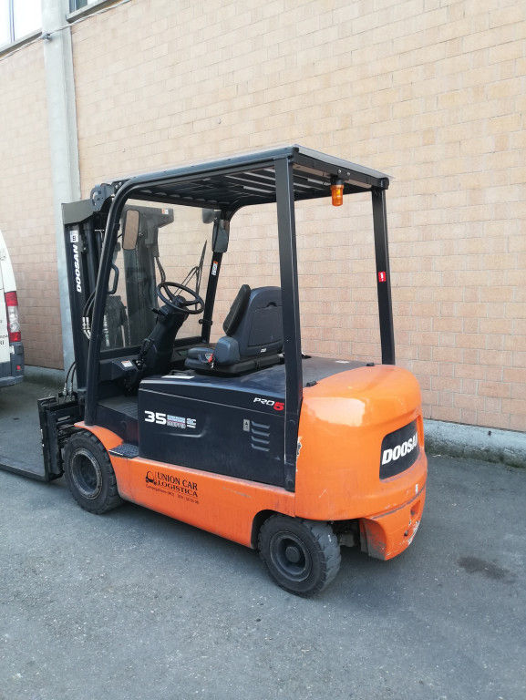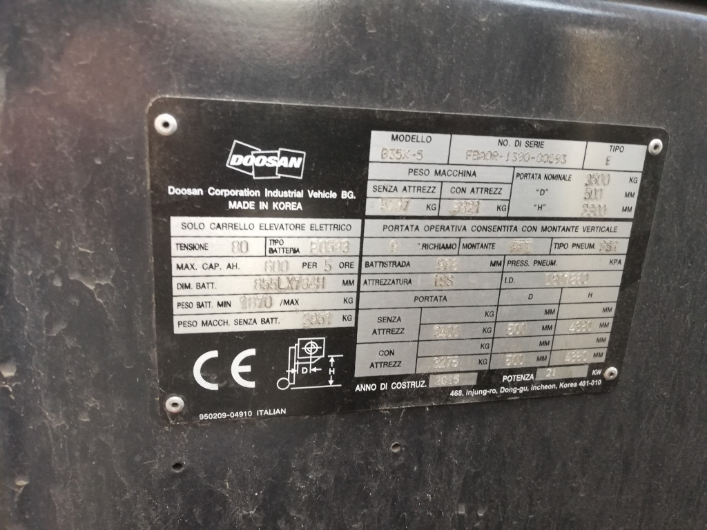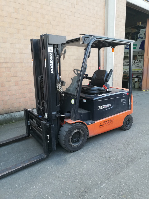 Carrelli elettrici usati di marca Doosan modello B30X-7 con propulsione Elettrica, portata 30 q.li, altezza di sollevamento 4380 mm, in vendita. Occasione.