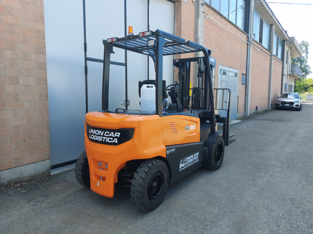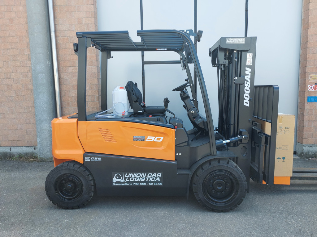 Carrelli elettrici usati di marca Doosan modello B50X-7 con propulsione Elettrica, portata 50 q.li, altezza di sollevamento 4700 mm, in vendita. Occasione.