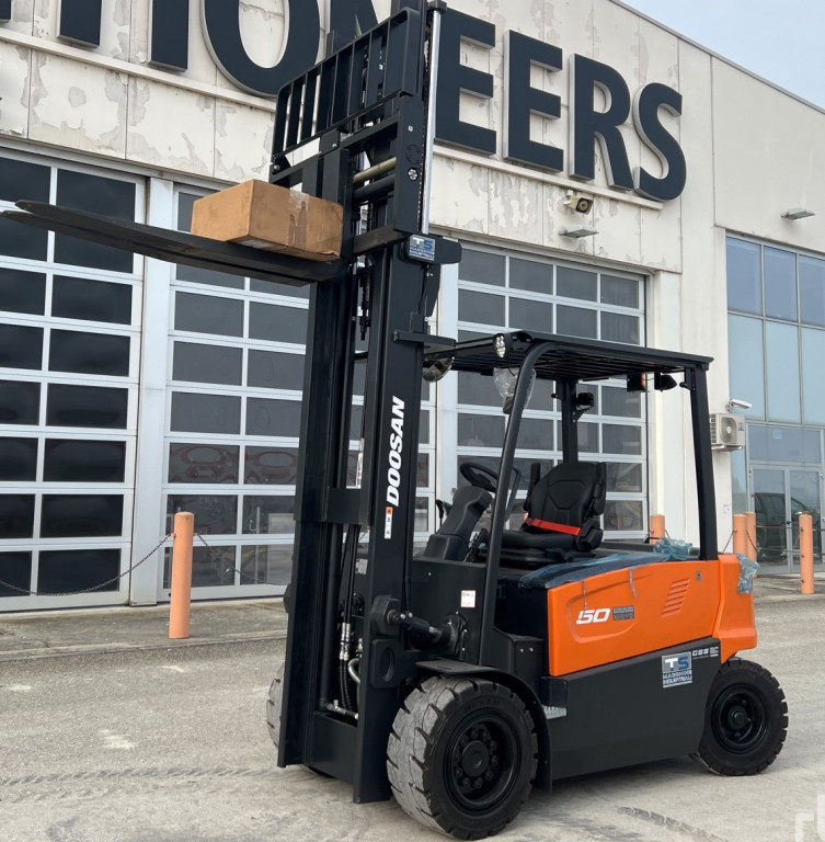 Carrelli elettrici usati di marca Doosan modello B50XC-7 con propulsione Elettrica, portata 50 q.li, altezza di sollevamento 4000 mm, in vendita. Occasione a € 35.000.