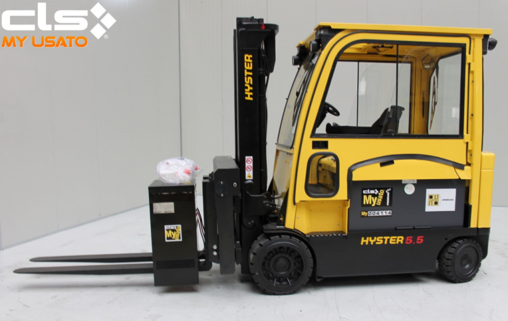 Carrelli elettrici usati di marca Hyster modello E5.5XN con propulsione Elettrica, portata 55 q.li, altezza di sollevamento 5750 mm, in vendita. Occasione a € 50.000.
