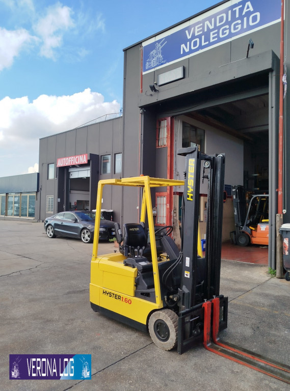 Carrelli elettrici usati di marca Hyster modello J 1.60 con propulsione Elettrica, portata 16 q.li, altezza di sollevamento 3800 mm, in vendita. Occasione a € 7.700.