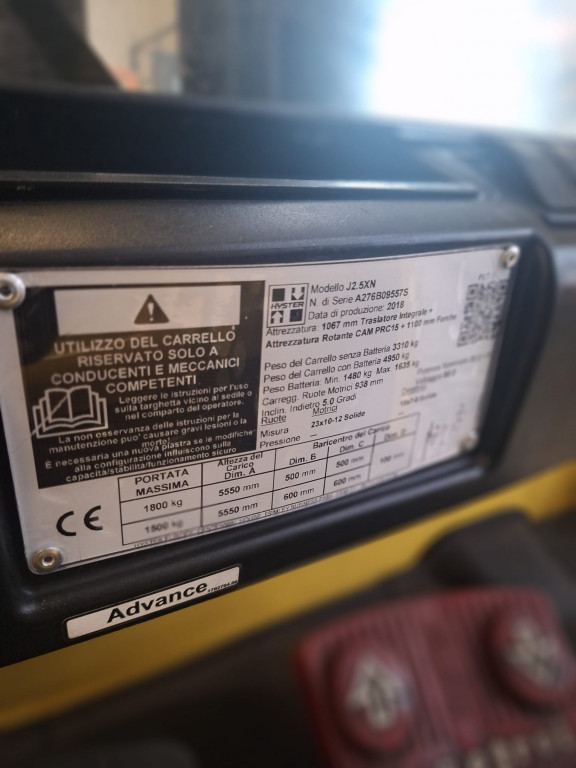 Carrelli elettrici usati di marca Hyster modello J2.5XN con propulsione Elettrica, portata 25 q.li, altezza di sollevamento 5550 mm, in vendita. Occasione a € 14.500.