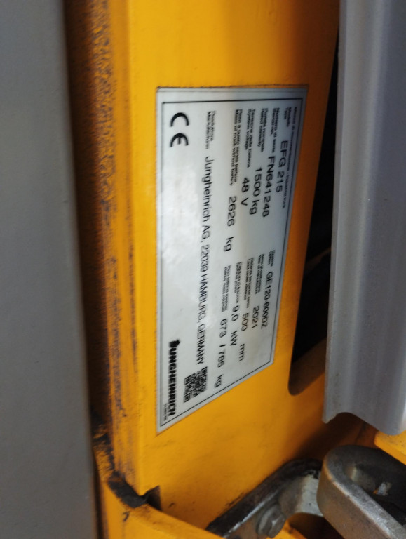 Carrelli elettrici usati di marca Jungheinrich modello EFG 215-600DZ con propulsione Elettrica, portata 15 q.li, altezza di sollevamento 6000 mm, in vendita. Occasione a € 10.800.