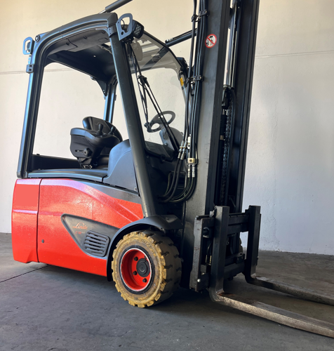 Carrelli elettrici usati di marca Linde modello E 18 con propulsione Elettrica, portata 18 q.li, altezza di sollevamento 5475 mm, in vendita. Occasione.