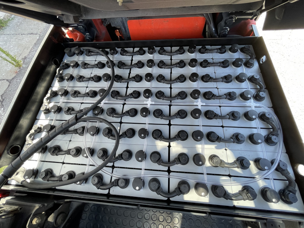RICONDIZIONATO, CERTIFICATO CE IN COPIA, montante duplex, forche 1.200 mm, posizionatore con traslatore integrato, 4 vie idrauliche con impianto, vetro anteriore, vetro superiore, lampeggiante, segnalatore acustico di retromarcia, batteria NUOVA 80 V / 500 Ah - anno...