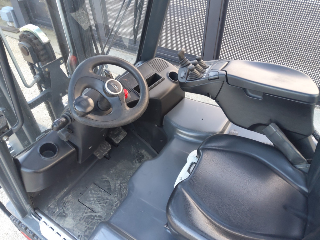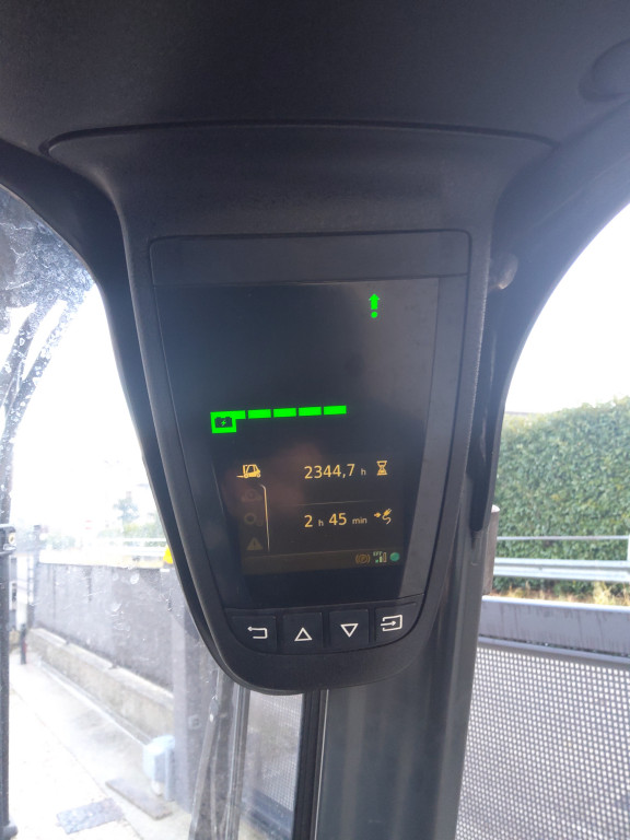 | Equipaggiamento | Caricabatterie, Semicabina, Tettuccio, Vetro anteriore, Fari da lavoro anteriori, Fari da lavoro posteriori, Lampeggiante, Cicalino, Sterzo, Pedale singolo, Tergicristallo, Specchio retrovisore, Freno a mano a pulsante, Indicatore scarica batteria, Contaore, Sedile in pelle, Estrazione batteria laterale, Idraulica supplementare singola |