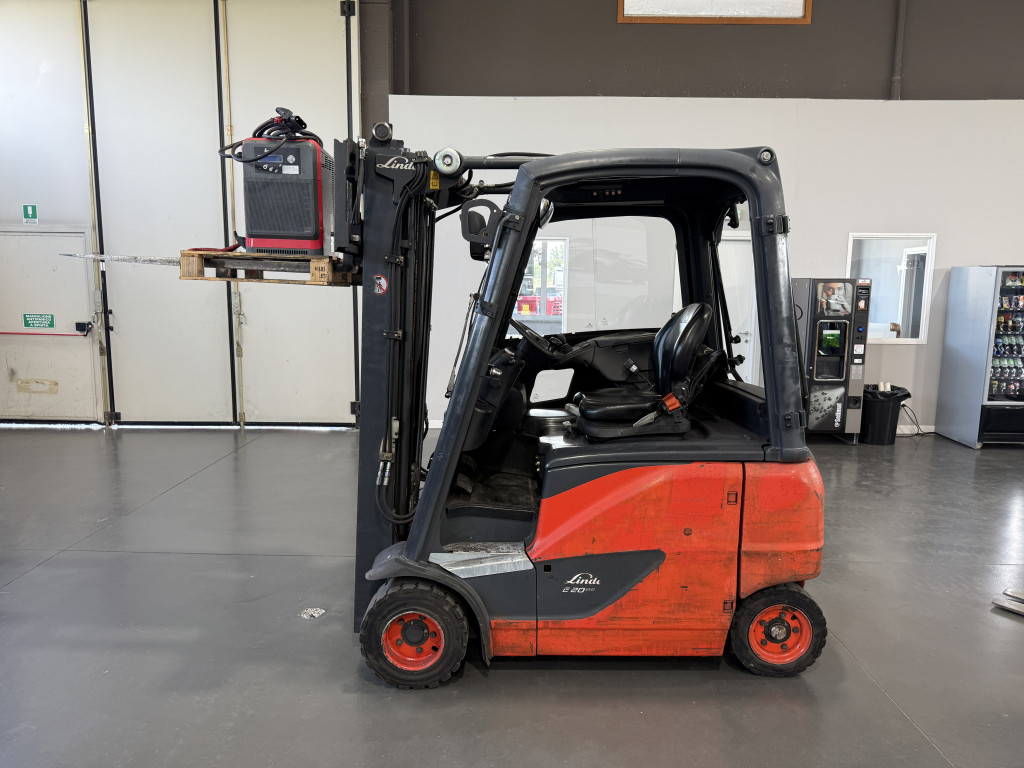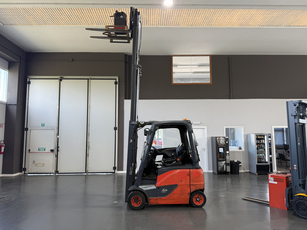 Carrelli elettrici usati di marca Linde modello E20 con propulsione Elettrica, portata 20 q.li, altezza di sollevamento 4700 mm, in vendita. Occasione a € 13.500.
