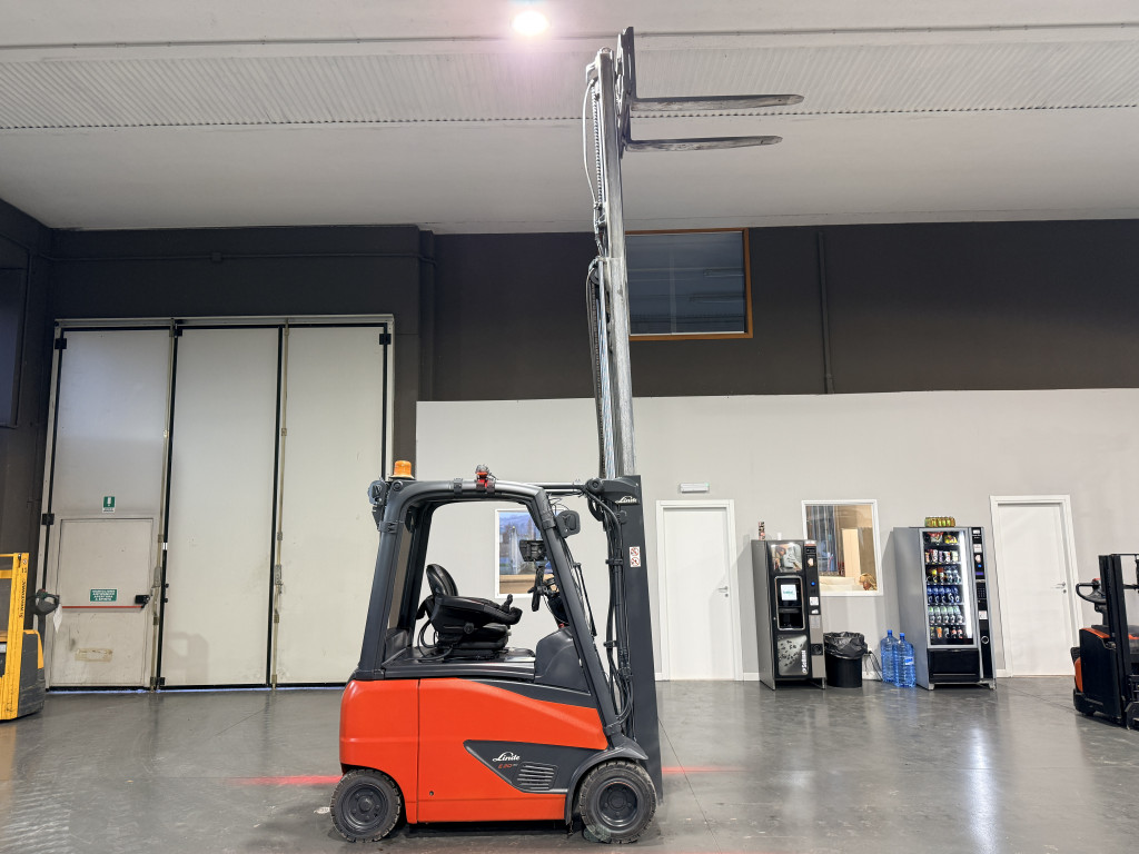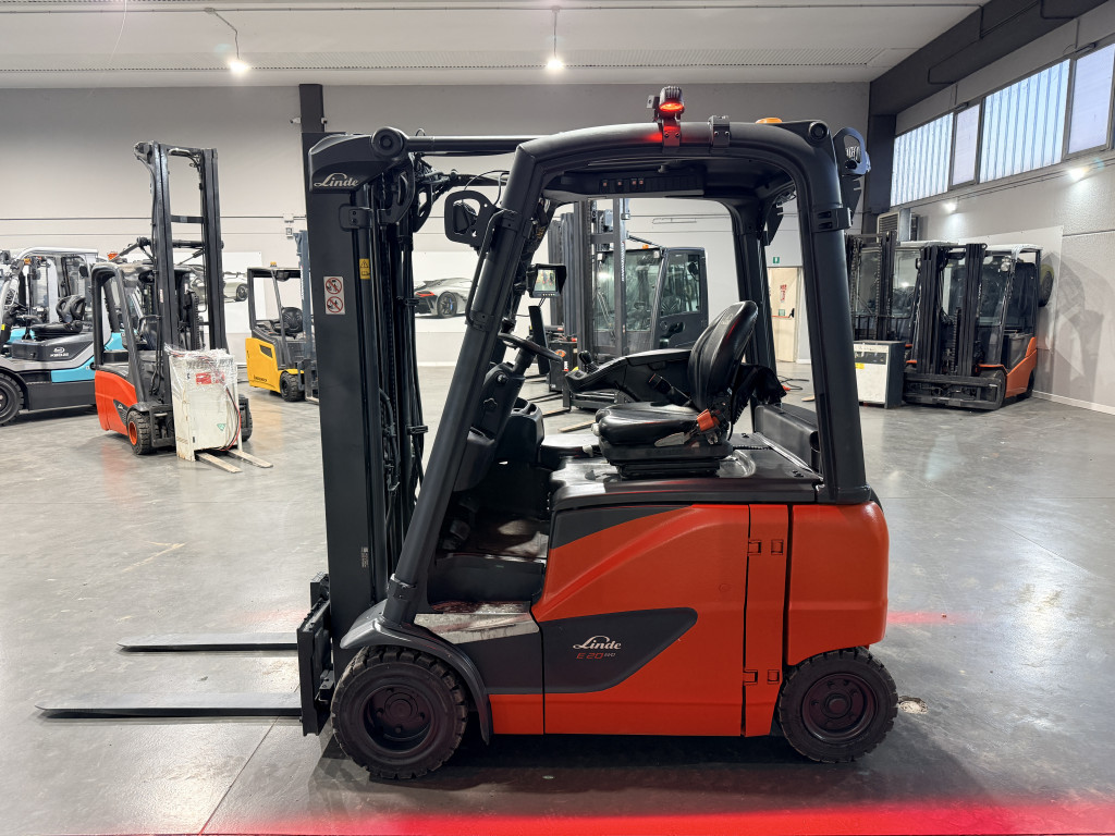 Carrelli elettrici usati di marca Linde modello E20PH-02 con propulsione Elettrica, portata 20 q.li, altezza di sollevamento 4700 mm, in vendita. Occasione a € 16.500.