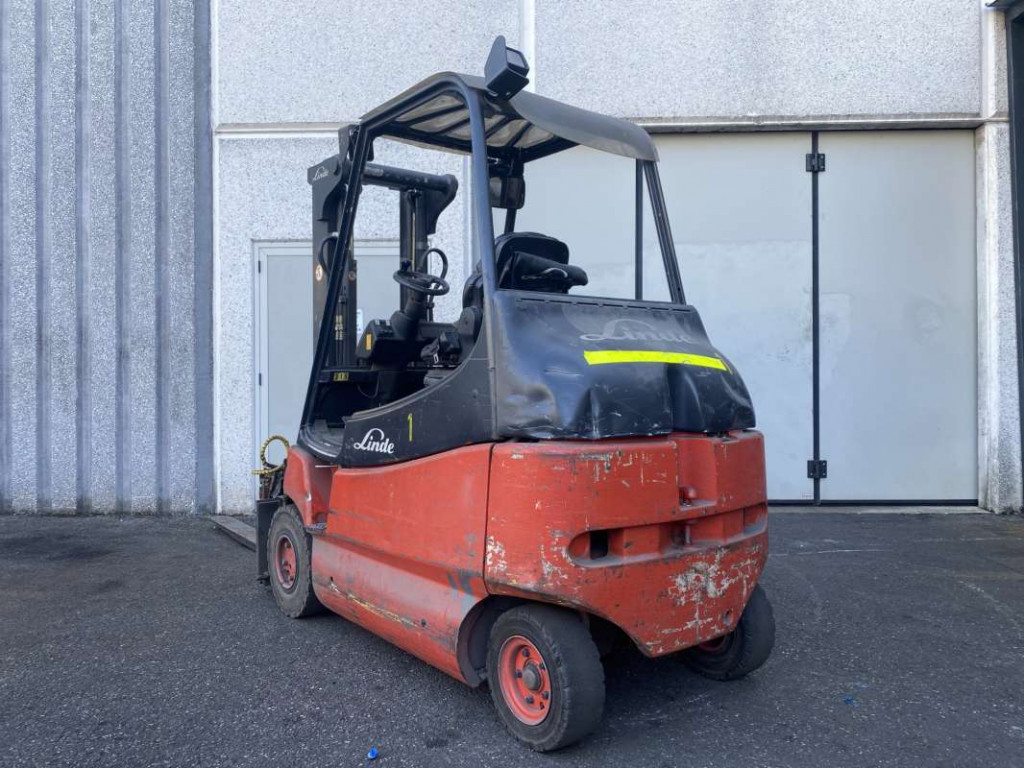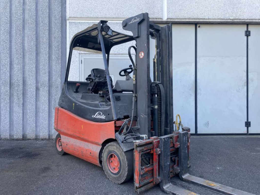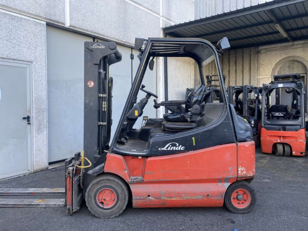 Carrelli elettrici usati di marca Linde modello E25/02-600 con propulsione Elettrica, portata 25 q.li, altezza di sollevamento 4700 mm, in vendita. Occasione a € 8.900.