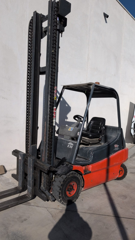 Carrelli elettrici usati di marca Linde modello E30-01 336 con propulsione Elettrica, portata 30 q.li, altezza di sollevamento 5000 mm, in vendita. Occasione a € 5.000.