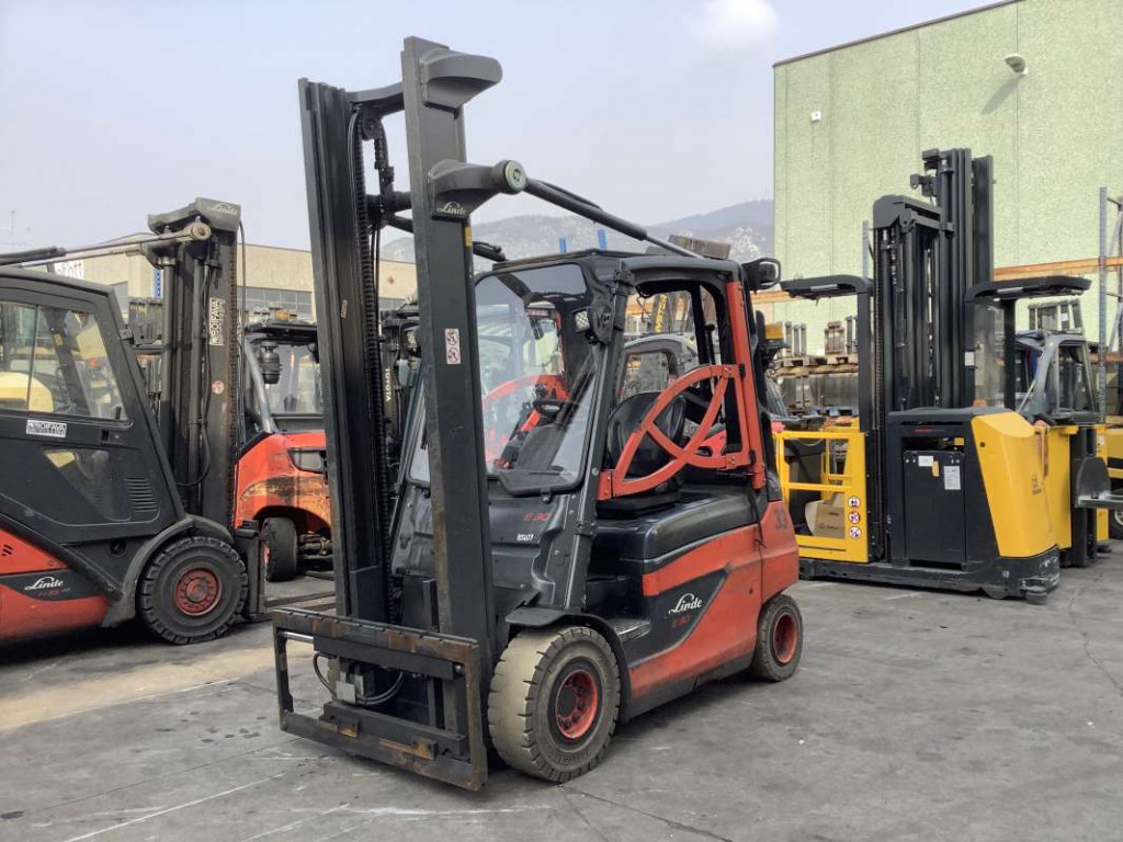 Carrelli elettrici usati di marca Linde modello E30-01 con propulsione Elettrica, portata 30 q.li, altezza di sollevamento 3995 mm, in vendita. Occasione a € 16.000.