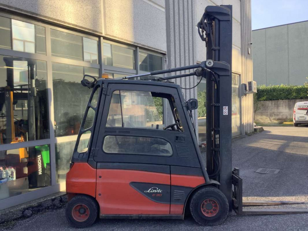 Carrelli elettrici usati di marca Linde modello E30L-01 con propulsione Elettrica, portata 30 q.li, altezza di sollevamento 4995 mm, in vendita. Occasione a € 19.200.